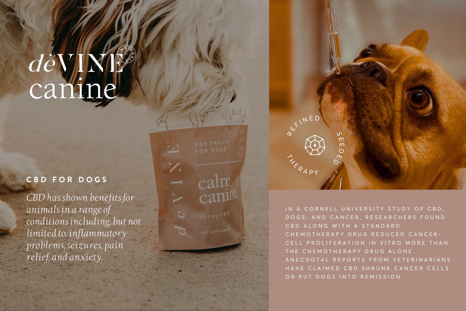 With 5 mg of CBD per treat and less than 0.3% THC, deVINE Canine Calming Treats provide safe, non-intoxicating support for your pup, whenever they need it most.